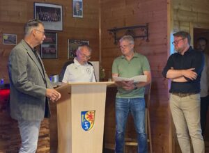 Allen hier Anwesenden danke ich als heutiger Ehrenvorsitzender und damaliger Vorsitzender des VFB, sowie Ortsvorsteher recht herzlich. Ihr alle habt dazu beigetragen, dass es den VFB in der heutigen Form und Verfassung gibt. Dazu zählen neben den bereits erwähnten politischen Vertretern, die Vorsitzenden des Fördervereins Stefan Bröckel, Thomas Maurer, Josef Meisberger bis zum heute Peter Fuchs.