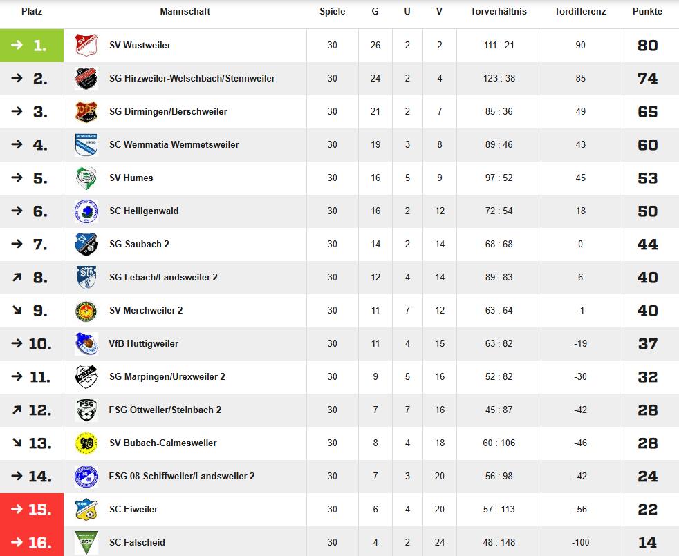- Bezirksliga St. Wendel: 5. Tabellenplatz